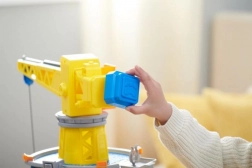 Een echte draaibare kraan met extra grijper voor het optillen en laten zakken van voorwerpen, die kinderen verrukt zal maken over interactief*spel*.