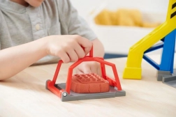 Stelt kinderen in staat om eigen bouwblokken te creëren met kinetisch zand. Kinderen kunnen met de pers, geactiveerd door een rode hendel, hun eigen constructies maken en verwerken.