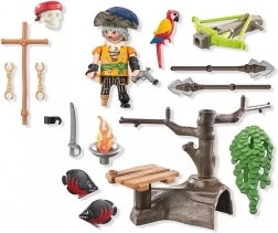 Verken verloren schatten met de Playmobil-speelset Piraat met ballista. Het vlot is uitgerust met draaibare kanonnen die bescherming bieden tijdens de tocht over de open zee. Nauwkeurig geselecteerde accessoires zijn in het vat opgeborgen, zodat alles klaar is voor plotselinge gevaren.