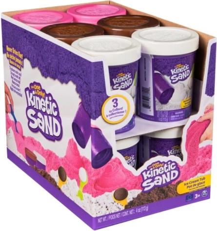 Ontdek eindeloze mogelijkheden met Kinetisch Zand IJstube, een themaset die kinderen plezier brengt en hun verbeelding stimuleert. Deze set bevat 113 g roze, wit of bruin kinetisch zand, ideaal om ijstoetjes en hoorntjes te maken.
