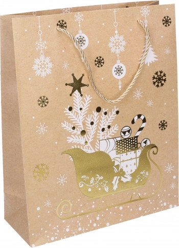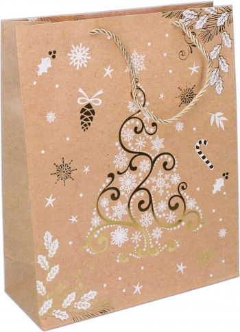 Stijlvolle cadeautas in maat M met afmetingen 26 × 32 × 10 cm, ideaal voor het verpakken van kerstcadeaus. Biedt 4 verschillende kerstmotieven, een stevige uitvoering en praktische handvatten voor comfortabel dragen.