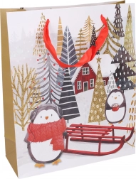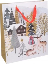 Kies uit 4 verschillende kerstmotieven die de feestelijke sfeer benadrukken. De tas bespaart tijd en zenuwen – geen papier knippen of plakken. Leg het cadeau erin, eventueel aangevuld met zijdepapier, en je bent klaar.