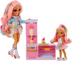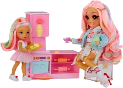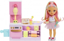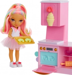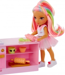 Beleef zoete avonturen met de schattige pop uit de RAINBOW HIGH LITTLES-collectie en haar stijlvolle banketbakkerij. Het keukentje met oven, vormpjes en ijsdispenser biedt talloze manieren om kleurrijke lekkernijen te maken en de creativiteit en fijne motoriek van kinderen te ontwikkelen. Dankzij de vijf kleuren boetseerklei kunnen kinderen croissantjes bakken, cupcakes versieren en zelfs ijs “draaien”.