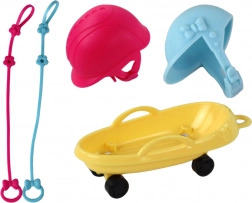 De schattige husky met gele slee/karretje en helmen voor veilig spel stimuleren zorgzaamheid, creativiteit en rollenspel.