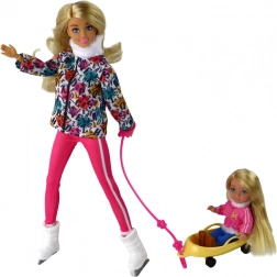 Deze uitgebreide set biedt kinderen uren fantasierijk spel en winterse verhalen. De hoofdpop met lang blond haar is gekleed in een kleurrijke winterjas, roze broek en schaatsen, klaar voor de ijsbaan en sneeuwpret. De beweeglijke ledematen maken realistische poses en het eenvoudig creëren van scènes mogelijk.