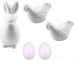 Til je paasdecoraties naar een hoger niveau met het paasset schilderpakket voor polystyreendecoraties. Deze creatieve set is geweldig voor kinderen en volwassenen die een persoonlijke touch willen geven aan hun feestelijke decoraties. In de set vind je een konijn van 10 cm hoog, twee kippen van 7 x 5 cm en twee eieren van 5 cm. Goed afgestemde kleuren en de meegeleverde kwast maken het gemakkelijk om details in te kleuren.