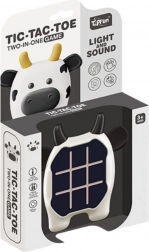 Technische specificaties: - Afmetingen spel: 12 x 11,5 x 3 cm - Afmetingen verpakking: 26,5 x 15 x 4 cm - Materiaal: Hoogwaardige kunststof - Voeding: 2 x 1,5 V AA (inbegrepen) - Maximaal aantal spelers: 2 - Type spel: Elektronisch, educatief - Spelmodi: 3 modi – Boter-Kaas-en-Eieren, Twee-speler, Geheugen - Geluidseffecten: Ja - Lichteffecten: Ja, verlicht bord - Motief: Koe - Bestemming: Kinderen, volwassenen, familiespel