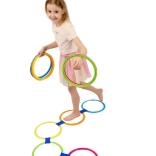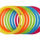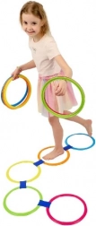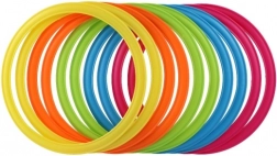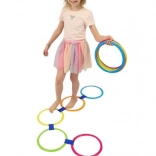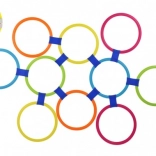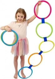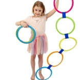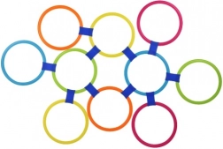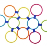 Deze kleurrijke set bevat 10 ringen in vijf kleuren en 10 praktische koppelingen, waarmee je de ringen eenvoudig aan elkaar kunt verbinden in allerlei vormen – parcours, hindernissen, een hinkelbaan of doelen om naar te gooien. De ringen zijn perfect voor spel buiten en binnen en stimuleren kinderen tot actieve beweging.