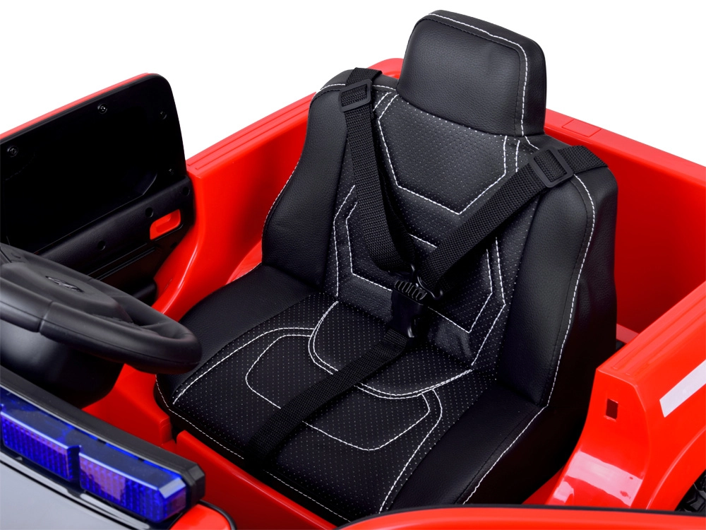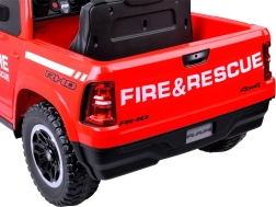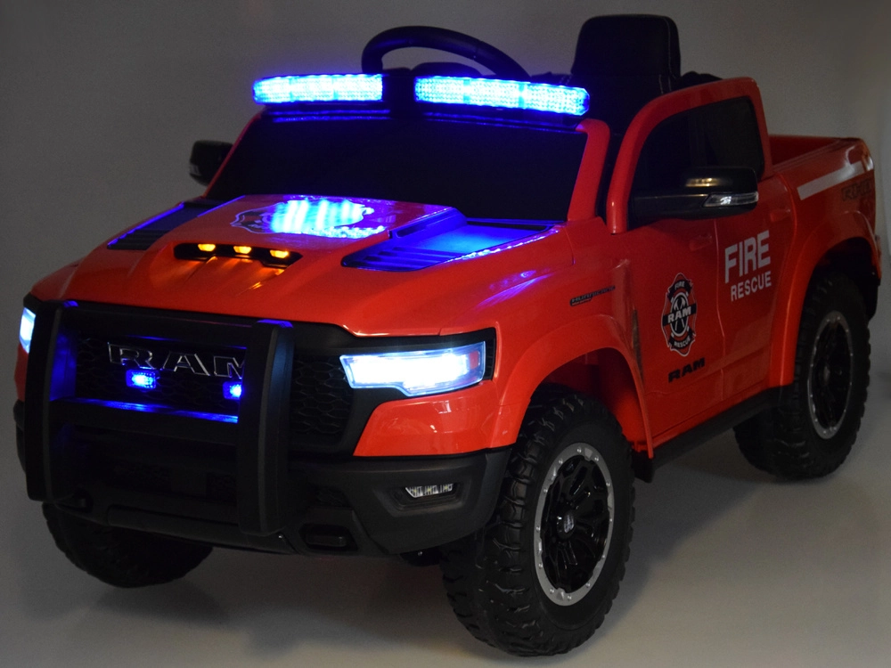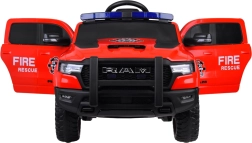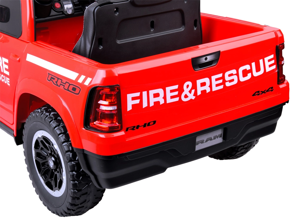 De gelicentieerde RAM kinderauto in brandweeruitvoering Fire & Rescue biedt een realistische rij- en inzetbeleving. Dankzij de krachtige 4×12 V (25 W) motoren en de 12 V 10 Ah accu rijdt hij vlot op asfalt, klinkers en gras. Voor comfort en veiligheid zorgen de zachte EVA-wielen, achterste schokdempers, openslaande deuren en een 3-punts veiligheidsgordel op de stoel van eco-leer.