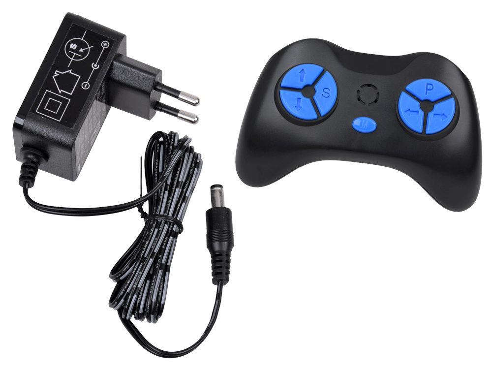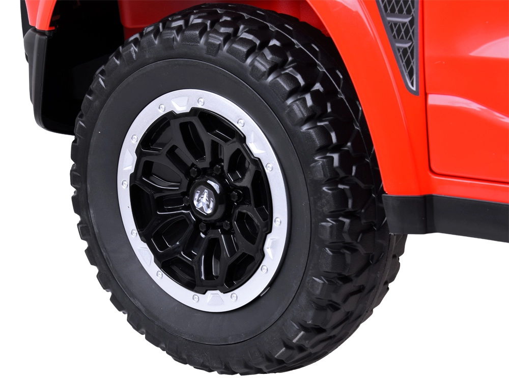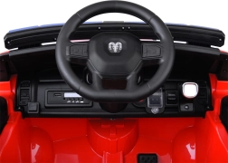 Bedien snelheid, richting en rem via de 2,4 GHz afstandsbediening. Het multimediapaneel biedt USB/Mp3, muziek, claxon en het activeren van zwaailichten en sirene.