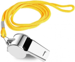 Het is gemaakt van metaal, wat duurzaamheid garandeert. Bevat een plastic balletje voor nauwkeurig geluid. De hanger van het gele koord laat toe om het gemakkelijk om de nek te hangen.