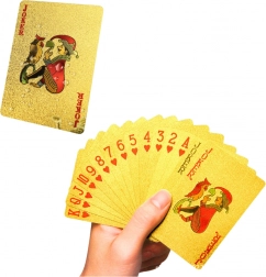 Betreed de wereld van emotievolle spellen met gouden plastic kaarten. Deze set is ideaal voor klassieke spellen zoals poker, makao of duizend. Het gouden design geeft elk spel een luxe uitstraling en garandeert een lange levensduur dankzij de stevige plastic structuur. Perfect voor avonden met vrienden of familie, of als een stijlvol cadeau voor liefhebbers van kaartspellen.