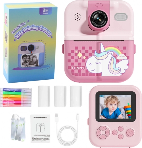 Met dit apparaat kunnen kinderen foto's maken, video's opnemen en hun favoriete foto's direct printen zonder inkt. Inbegrepen zijn 3 rollen thermisch papier gratis, zodat je direct kunt starten. De camera is uitgerust met een 2,4-inch IPS HD-display dat zorgt voor een helder beeld en comfortabele weergave van foto's en video's.