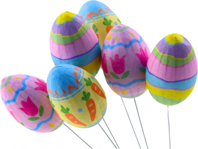 De decoratieve eieren bieden speelse bloem- en wortelmotieven in levendige kleuren die elke paasversiering tot leven brengen.