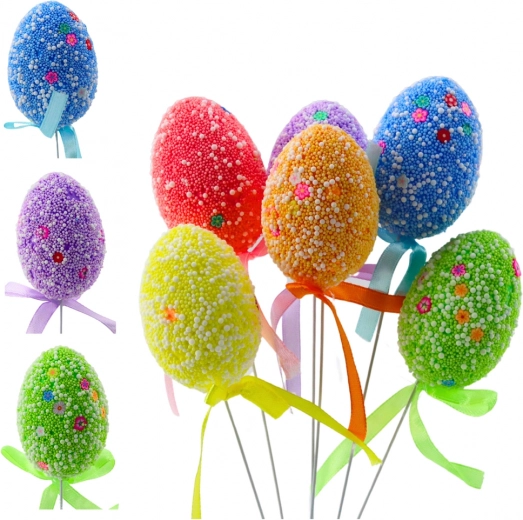 Elk eitje is versierd met foamkralen en subtiele patronen voor een unieke look.