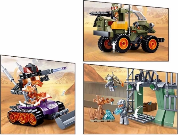 - Actie-uitrusting: 5 gewapende helden, 2 gevechtsvoertuigen, verdedigingsonderdelen van de basis