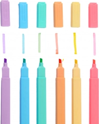 Praktische set van 6 markeerstiften in heldere kleuren voor school en kantoor. Intense kleuren benadrukken belangrijke informatie, sneldrogende inkt minimaliseert vlekken en het ergonomische ontwerp zorgt voor comfortabel gebruik. In het praktische etui heb je alles overzichtelijk bij de hand.