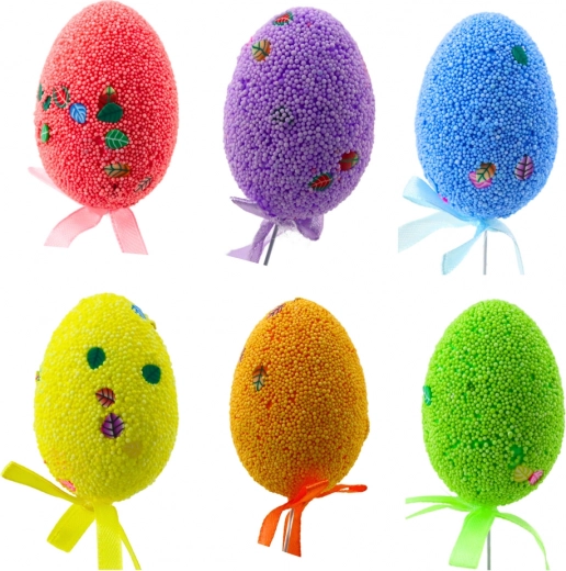 Deze decoratieve paaseieren aan draad zijn ideaal voor snelle en effectieve feestdecoratie. Het oppervlak bestaat uit kleine kralenkorreltjes die een opvallende structuur vormen, met decoratieve blaadjes en een strikje in de kleur van het eitje voor een elegante, harmonieuze uitstraling.