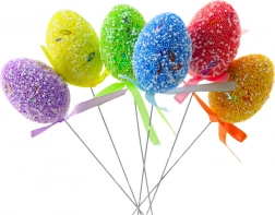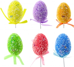 Paaseitjes op prikker met strikje, gekleurde set van 6 stuks