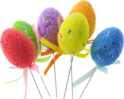 Dankzij de elastische draad plaats je de eitjes eenvoudig in bloemstukken, bloempotten, rieten manden of paaskransen. Het lichte styropormateriaal behoudt zijn vorm en is praktisch voor hergebruik. De set bevat 6 verschillend gekleurde eitjes, zodat je snel een harmonieuze en opvallende decoratie creëert.