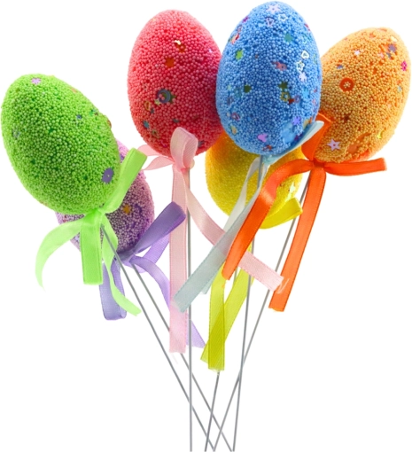 Paaseieren op stokje met strikje, kleurrijke decoratie, 6 stuks
