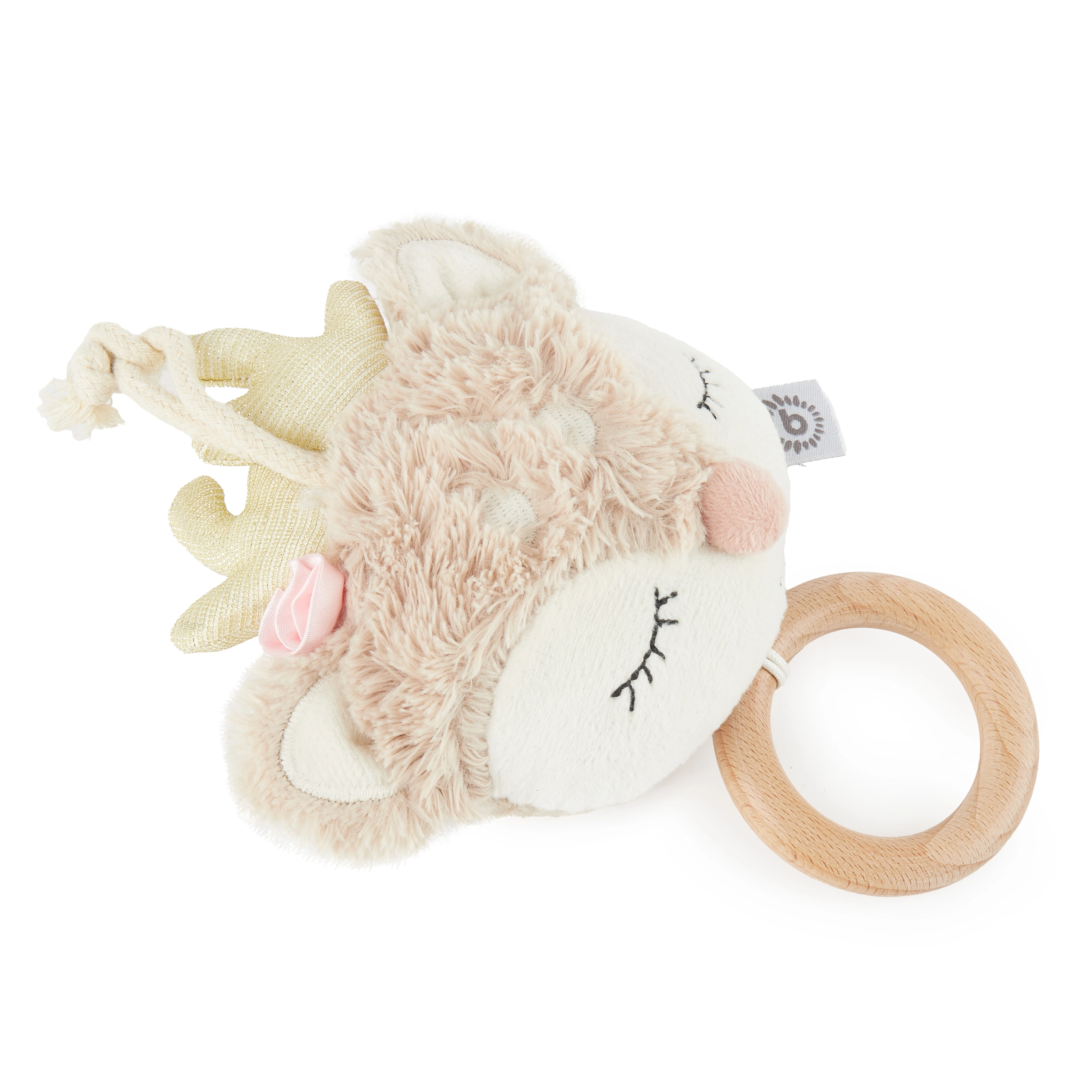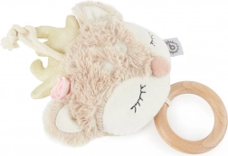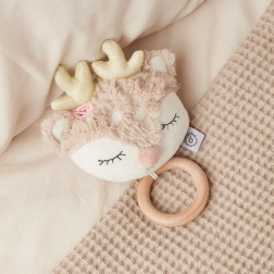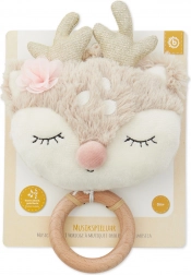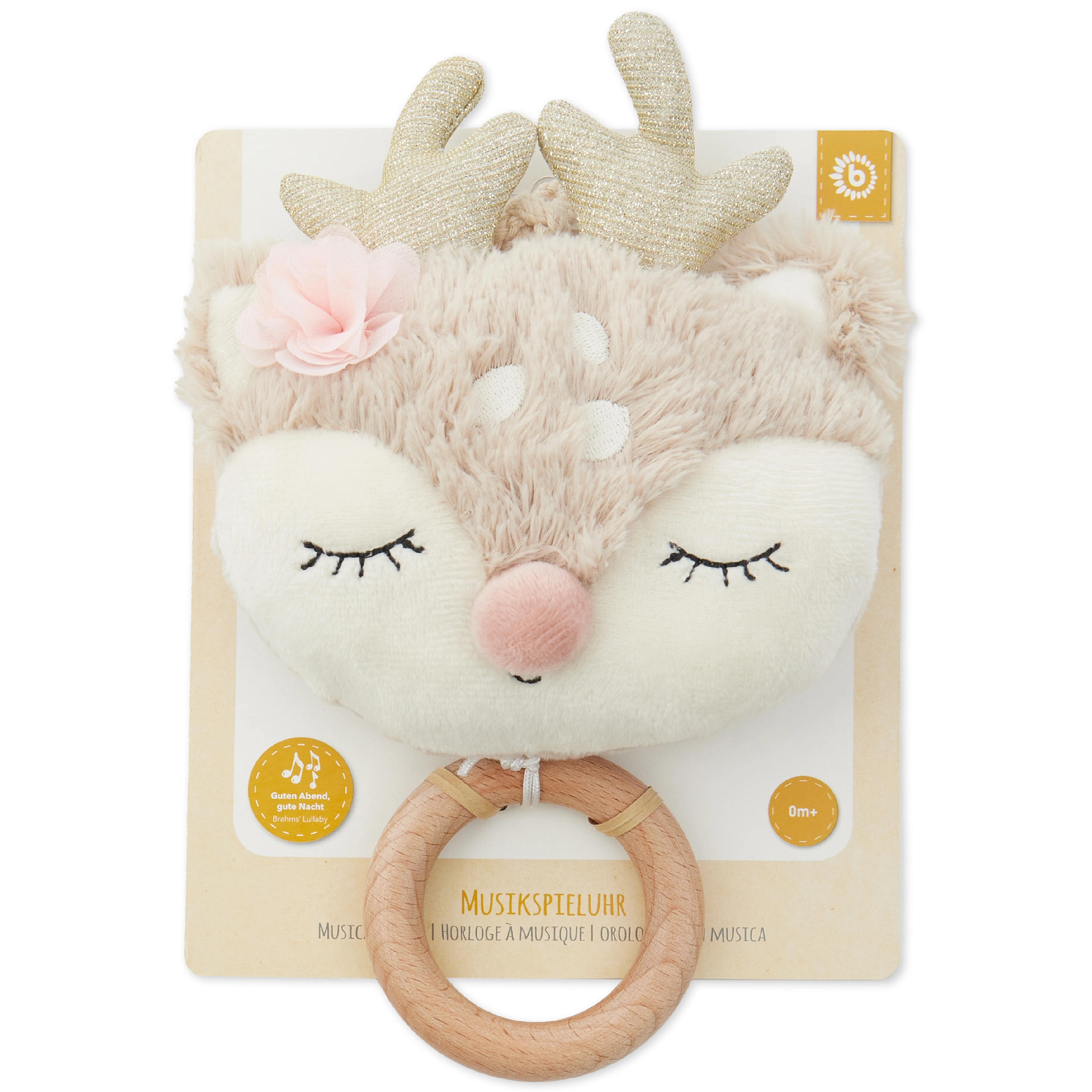 Hertje Ella van Bieco is een lief hangend muziekknuffeltje, ontworpen om te kalmeren en prettig te laten inslapen. Trek aan de elegante houten ring en het klassieke wiegenlied van Brahms klinkt, wat een gevoel van geborgenheid en rust oproept.