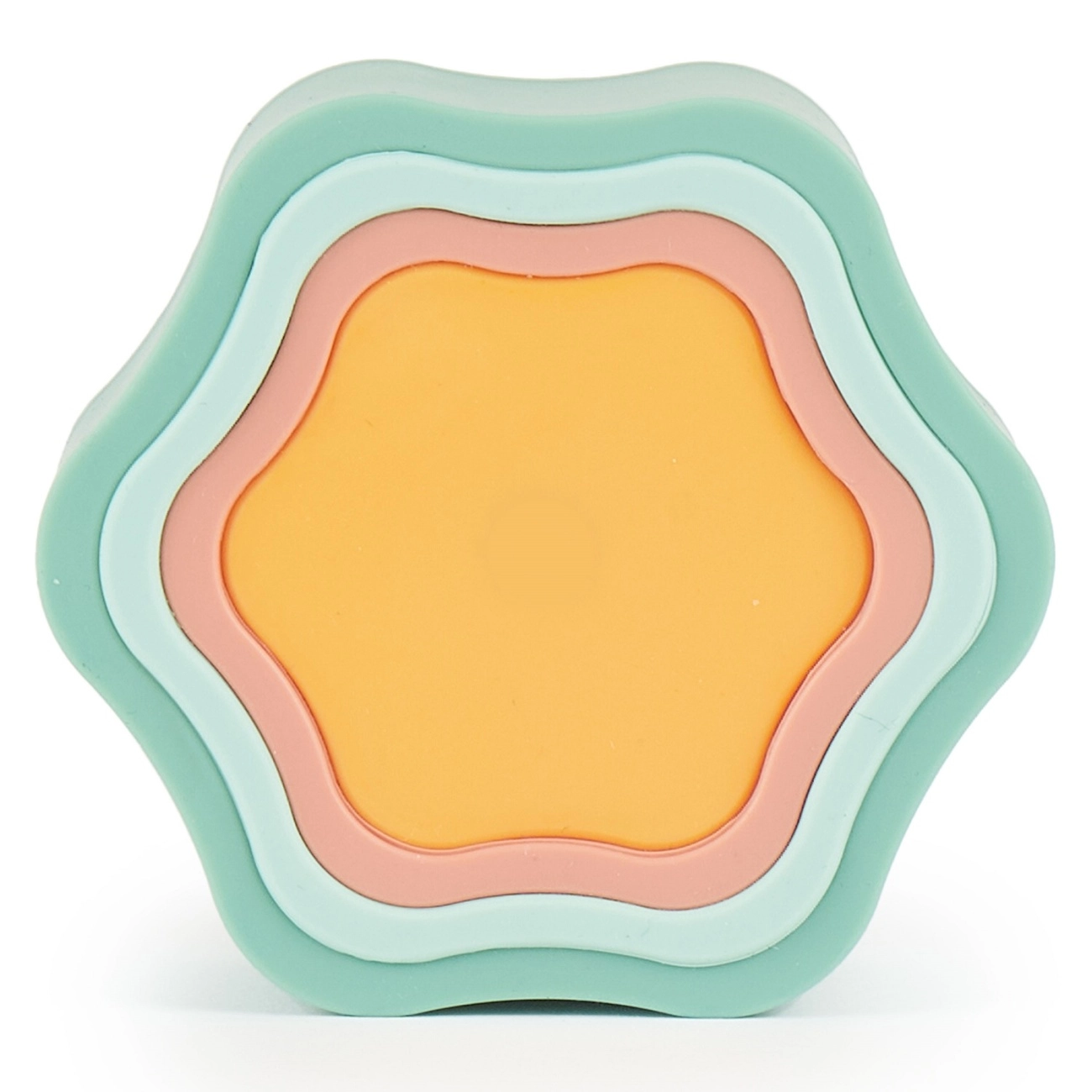 Deze kleurrijke stapelset in bloemvorm biedt kinderen leren door spel. De delen passen soepel in elkaar, zodat kinderen geduld, ruimtelijk inzicht en coördinatieve vaardigheden oefenen. Dankzij de zachte maar stevige siliconen is hanteren comfortabel en veilig.