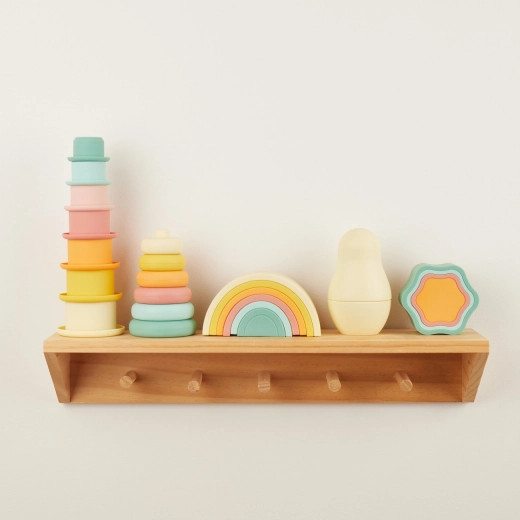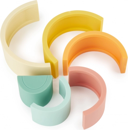 De siliconen stapelregenboog BIECO Tropical Vibes biedt kinderen creatief en veilig speelplezier. Het zachte maar stevige materiaal van 100% siliconen voelt prettig aan, is duurzaam en eenvoudig te onderhouden – water en milde zeep volstaan. De pastelkleuren nodigen uit tot stapelen, sorteren en balanceeractiviteiten.
