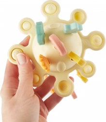 Stevige siliconen koordjes kunnen heen en weer worden getrokken, wat de fijne motoriek en oog-handcoördinatie bevordert.