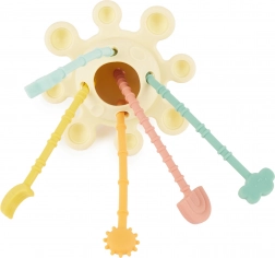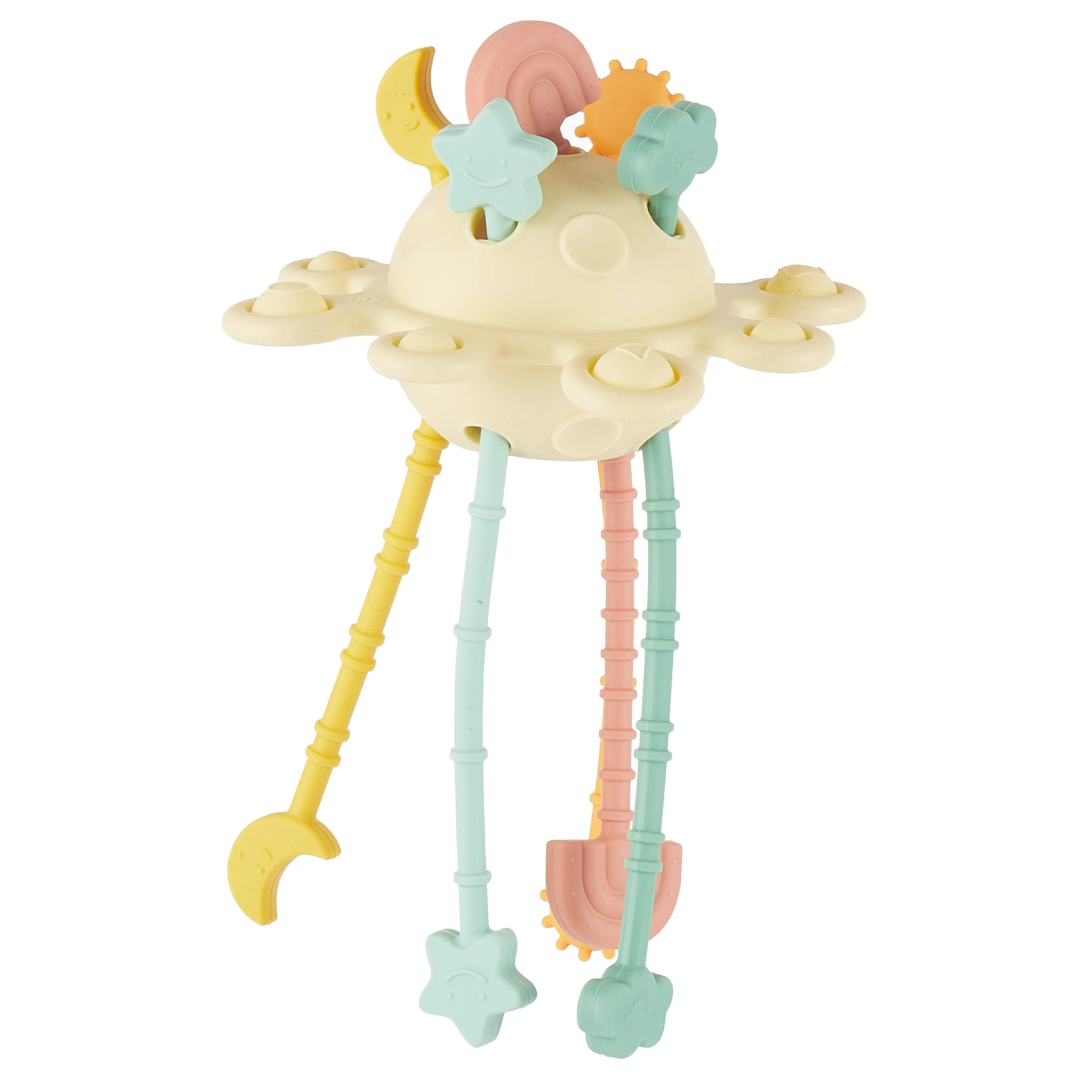 Dit siliconen motorische speeltje is ontworpen volgens Montessori-principes en helpt kinderen spelenderwijs vaardigheden natuurlijk te ontwikkelen. De stevige trekkoordjes kunnen heen en weer worden getrokken, de duwelementen versterken de vinger- en handspieren en de diverse texturen stimuleren tastzin en nieuwsgierigheid.