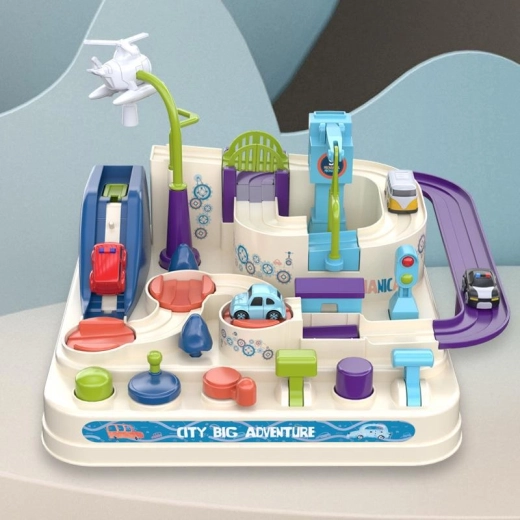De set bevat een kleurrijke hindernisbaan met een doordacht ontwerp dat maximaal speelplezier garandeert en de verbeelding van het kind stimuleert. Met vier autootjes kan het kind verschillende obstakels overwinnen, zoals glijbanen en bruggen. Het gebruik van speciale knoppen en bedieningsschakelaars op het bord draagt bij aan de ontwikkeling van logisch denken en motoriek.