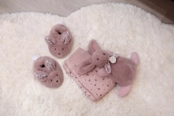 Deze betoverende cadeauset bevat een schattig roze pluchen konijntje en zachte slofjes, ideaal als cadeau voor elke baby van 0-6 maanden. Houdt de babyvoetjes warm en vergezelt je kleintje in de eerste levensmaanden.