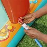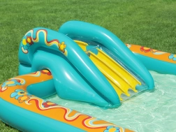 De kleurrijke glijbaan is voor extra veiligheid aan de bodem van het badje bevestigd zodat deze tijdens het spelen niet verschuift.