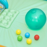 Onderdeel is ook een sorteermuur voor balletjes in de stijl van retro “rolschaatsen”, die kinderen op speelse wijze precisie en coördinatie bijbrengt. Dankzij het aftapventiel laat je het badje snel leeglopen en berg je het gemakkelijk op. Het speelcentrum kan het hele jaar door worden gebruikt – in de zomer met water, buiten het seizoen als droge speelplaats.