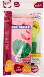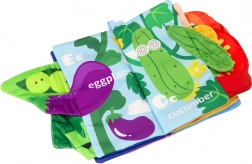 Dit zachte stoffen boek voor de allerkleinsten ontwikkelt de zintuigen en de fijne motoriek en leert tegelijk de eerste woordjes. Kleurrijke illustraties van groenten, knisperende pagina’s en piepelementen maken het tot een leuke educatieve speelgoed voor thuis en onderweg. Op de pagina’s staan de groentennamen in het Engels, wat spelenderwijs leren ondersteunt.