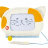 Tekentablet in de vorm van een kat met meegeleverde stylus aan een koord, waarmee je herhaaldelijk kunt tekenen zonder rommel.
