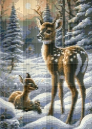 - Prachtig wintermotief: hertjes in een besneeuwd bos voor het effect van een sprankelende mozaïek.