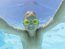 Polycarbonaat lenzen met UV-filter beschermen kinderogen tegen de zon en zorgen voor helder zicht onder water.