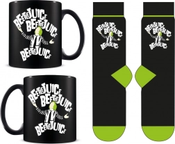 Stijlvolle cadeau set voor heren met het motief van BEETLEJUICE, perfect voor elke fan. Bevat een keramische mok 315 ml geschikt voor de vaatwasser en magnetron, en comfortabele sokken in maat 41–45 van aangenaam materiaal.