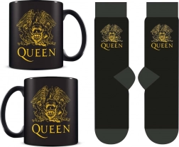 Stijlvolle heren cadeauset voor fans van de band QUEEN, bestaande uit een keramische mok met een inhoud van 315 ml en comfortabele sokken in universele maat 41–45. De mok is geschikt voor de vaatwasser en de magnetron, de sokken zijn van een prettig materiaal met elastaan voor een betere pasvorm.