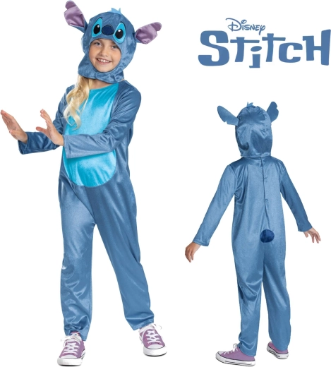 Verander je kind in de geliefde held STITCH en geef het eindeloze speelse avonturen. De overall van zachte polyester met contrasterende buik heeft een comfortabele pasvorm voor vrije beweging en een capuchon met opvallende oren en geborduurde details. Perfect voor carnaval, verkleedfeestjes, schoolactiviteiten en verkleedspel thuis.