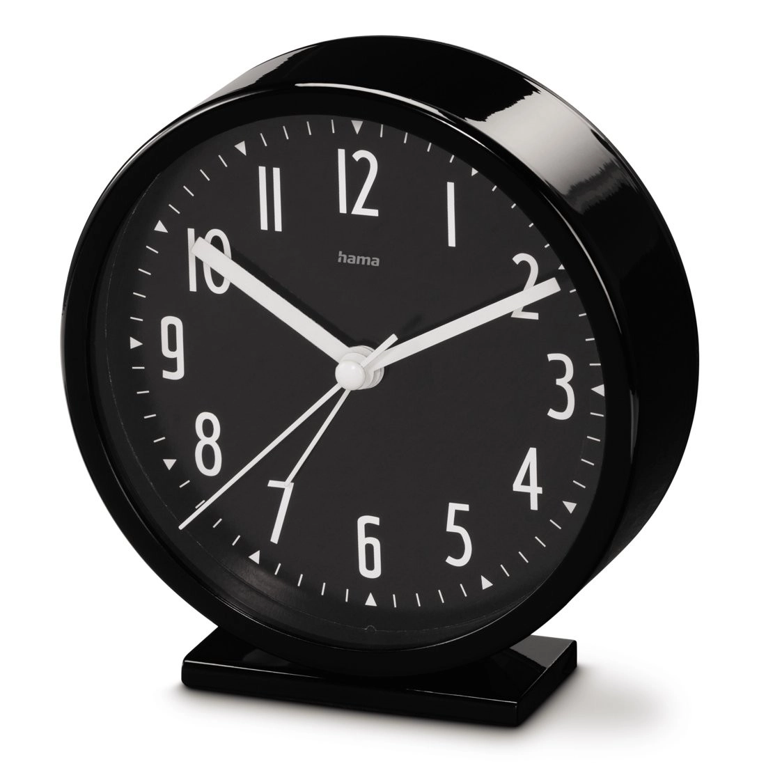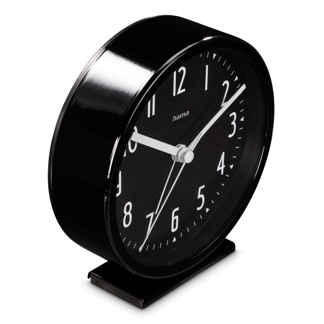De Hama Skye is een stijlvolle analoge wekker met een zwarte, goed leesbare wijzerplaat en grote witte cijfers, die perfect past in zowel moderne als klassieke interieurs. Het stille mechanisme met een soepel lopende secondewijzer elimineert storend getik en zorgt voor een ongestoorde slaap.