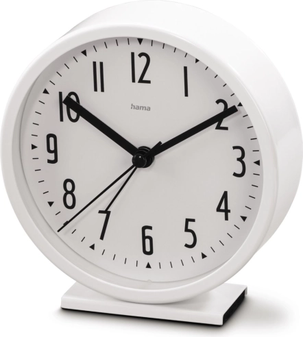 Word altijd op tijd wakker met de Hama Skye wekker, die modern minimalistisch design combineert met betrouwbare functionaliteit. Het grote witte wijzerplaatvlak met contrasterende zwarte Arabische cijfers zorgt voor snelle oriëntatie, zelfs bij minder licht, terwijl de vloeiende secondebeweging storend tikken elimineert.