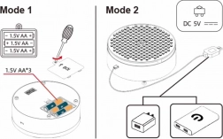 - USB 5 V of 3× AA (batterijen niet inbegrepen)