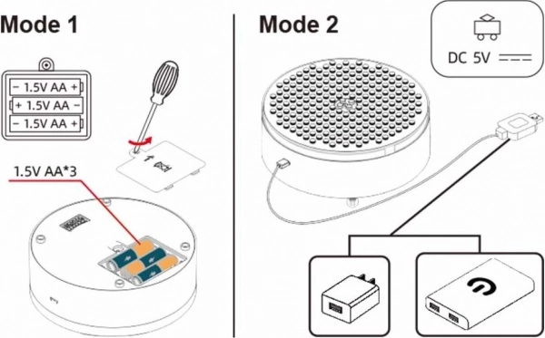 Speel en laat het licht branden zoals het jou uitkomt – handig via USB 5 V of met drie AA-batterijen. Praktische oplossing voor thuis en op reis (batterijen niet inbegrepen).