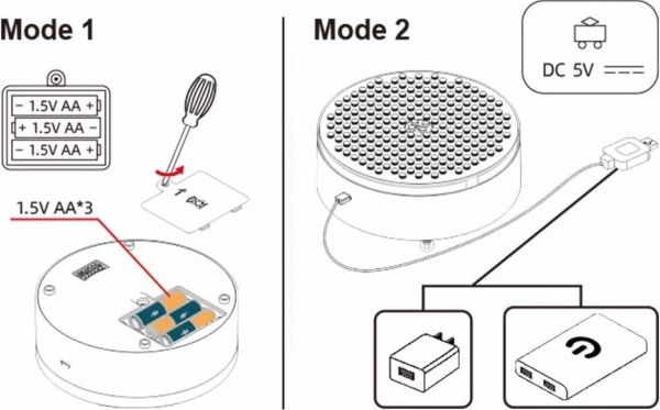 Speel en laat het overal schijnen. Sluit USB 5 V aan voor ononderbroken gebruik, of gebruik 3× AA-batterijen wanneer er geen stopcontact in de buurt is. Alles is eenvoudig te bedienen met een aparte schakelaar voor de functies.