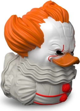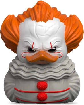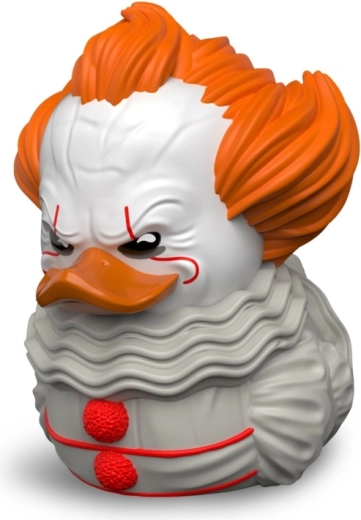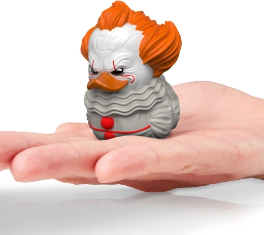 Het gedetailleerde ontwerp van Pennywise’ iconische look met oranje manen en een onheilspellende glimlach geeft het eendje een authentieke uitstraling.