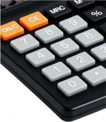 Beschikt over basisrekenfuncties, geheugenfuncties (M+, M-, MR, MC), procentberekening en worteltrekking. Contrasterende oranje functietoetsen en grote cijfers zorgen voor snelle oriëntatie en minimaliseren fouten bij het invoeren.