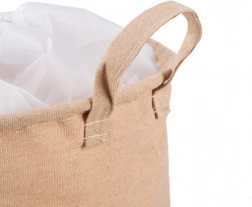 Het geïntegreerde deksel met trekkoord en stopper beveiligt de inhoud snel, zodat er niets uitvalt en wasgoed en speelgoed uit het zicht blijven.