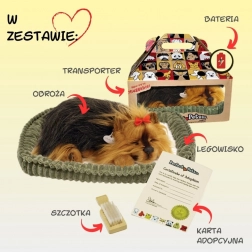 Ontdek de charme van een trouwe metgezel zonder voeren, uitlaten of rommel. Het Perfect Petzzz snurkend Yorkshire Terriër puppy oogt bijzonder realistisch – het rust tevreden in een zacht mandje, heeft een gedetailleerde vacht en snurkt zachtjes, wat een kalmerende sfeer creëert.